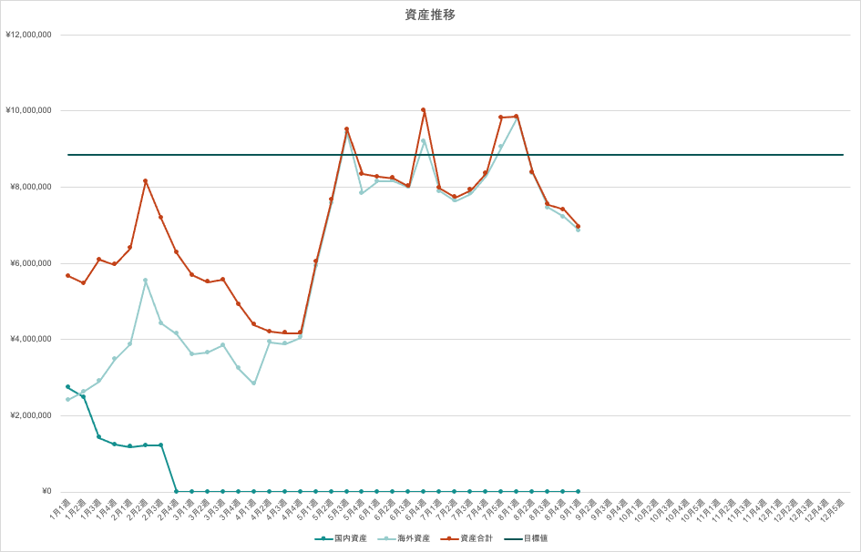 国内資産 | 海外資産 | 資産合計 | 目標値 | 目標までの不足額 | |