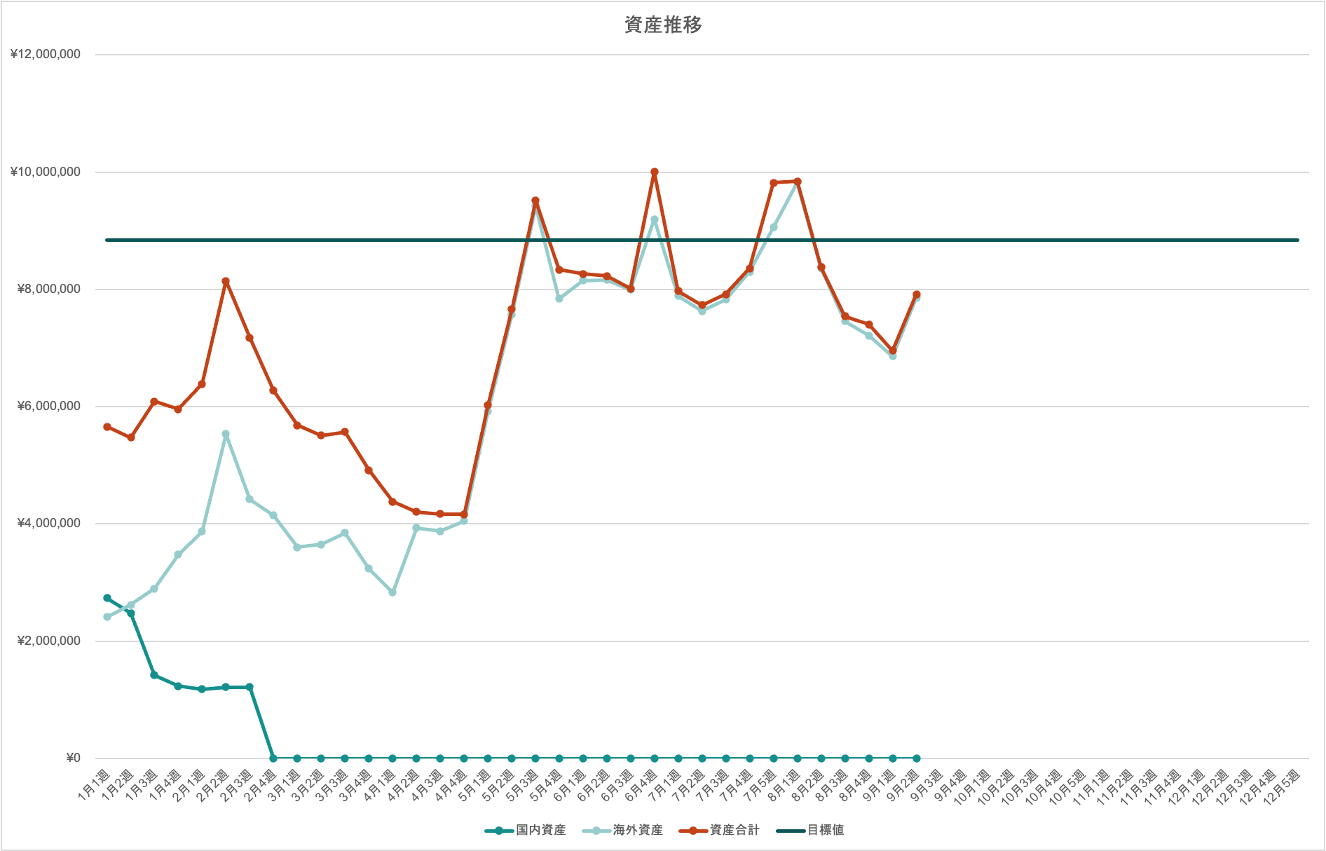 【投資メモ】【2025年9月1週目】総資産300万から8,000万を目指す男の資産状況メモ
