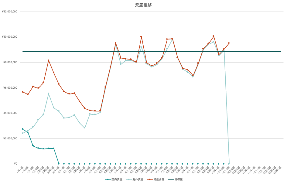 | 国内資産 | 海外資産 | 資産合計 | 目標値 | 目標までの不足額 | |