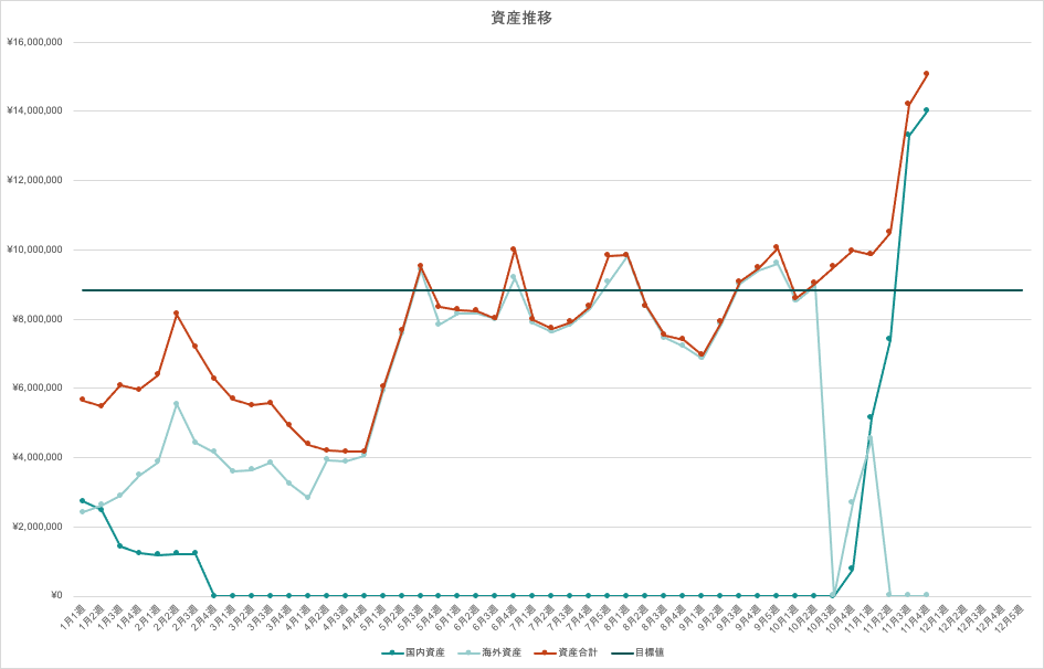 | 国内資産 | 海外資産 | 資産合計 | 目標値 | 目標までの不足額 | |