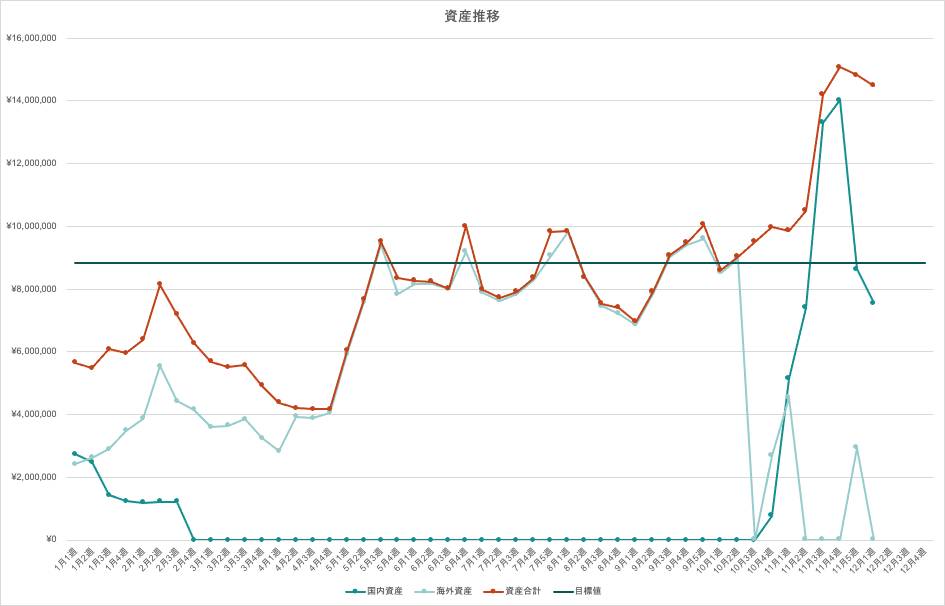 | 国内資産 | 海外資産 | 資産合計 | 目標値 | 目標までの不足額 | |