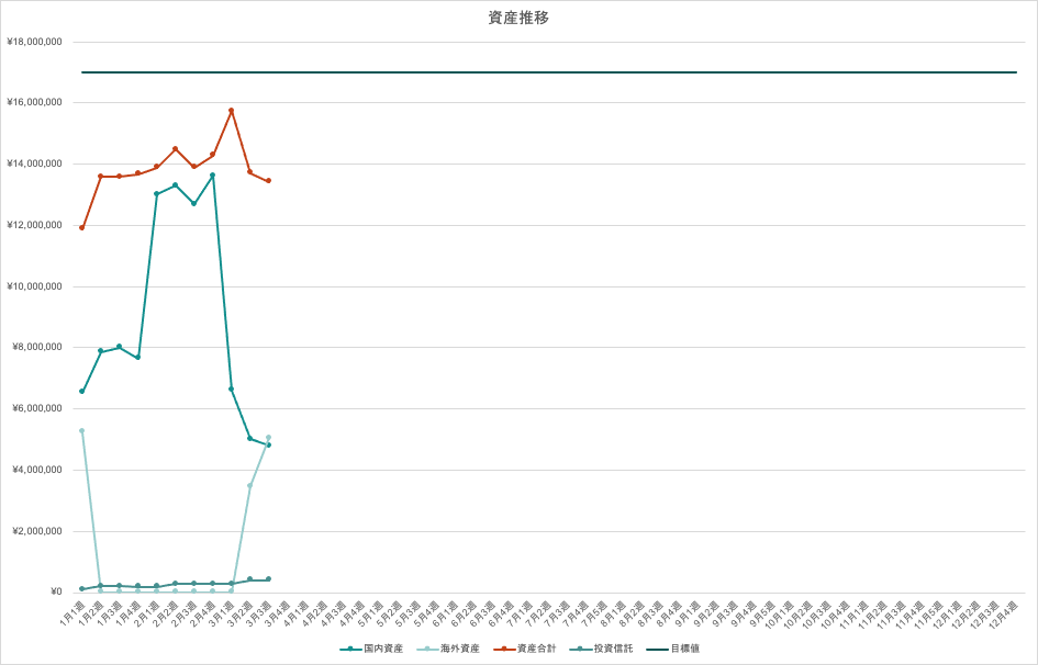 | 国内資産 | 海外資産 | 資産合計 | 目標値 | 目標までの不足額 | |