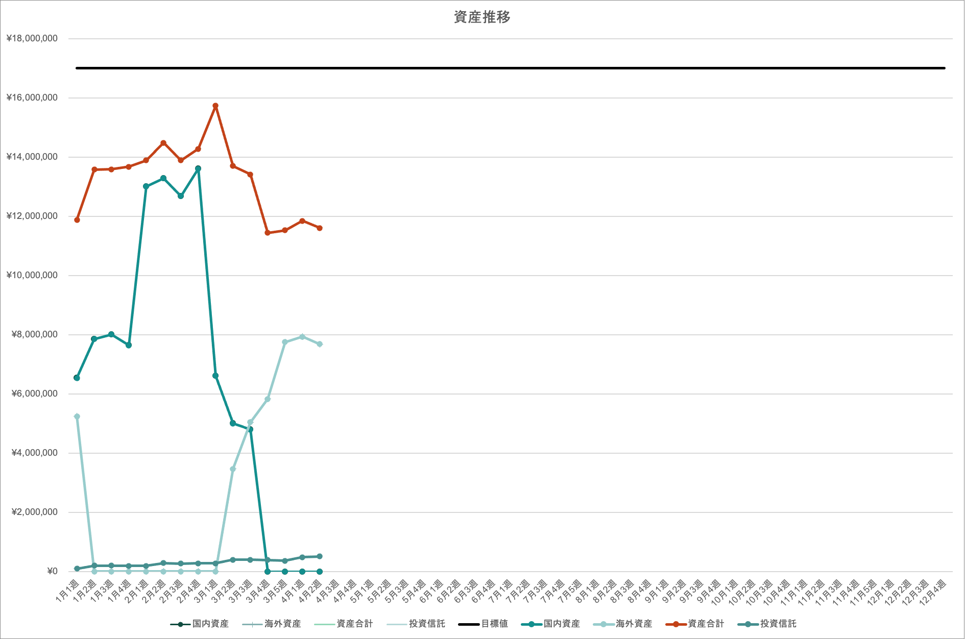| 国内資産 | 海外資産 | 資産合計 | 目標値 | 目標までの不足額 | |
